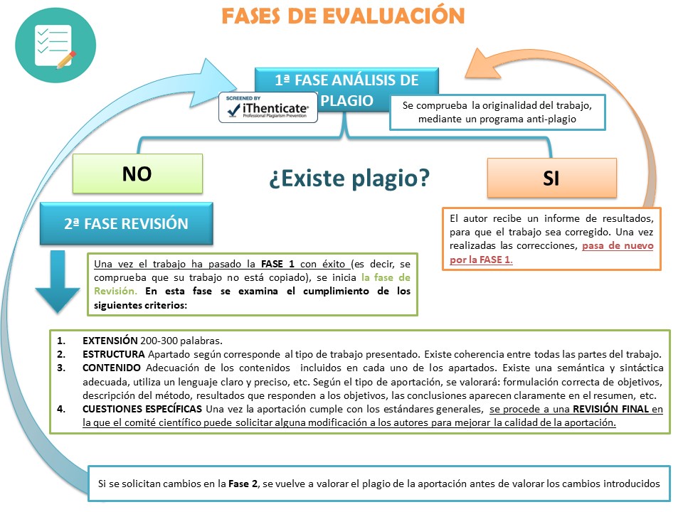 Criterio imprescindible para su valoración es la originalidad, entendida esta como presentación no plagiada de otros trabajos previos, presentados en otras reuniones científicas, o previamente publicados, aunque pertenezcan al propio autor (Originalidad implica no copiar y pegar nada de otras fuentes, aunque estas sean referenciadas. La reproducción literal de frases y párrafos (no conceptos) queda estrictamente limitada a las definiciones).